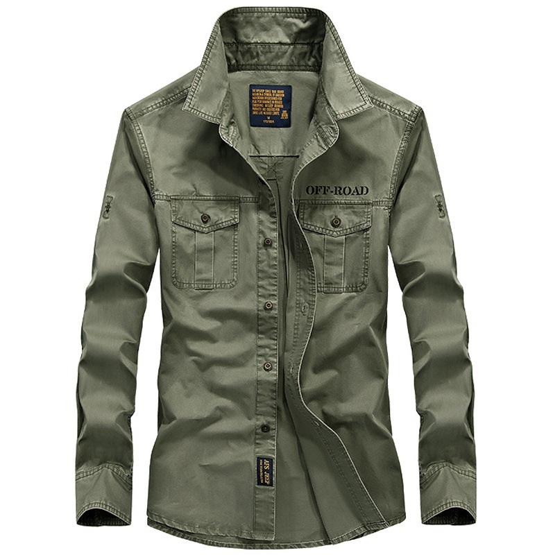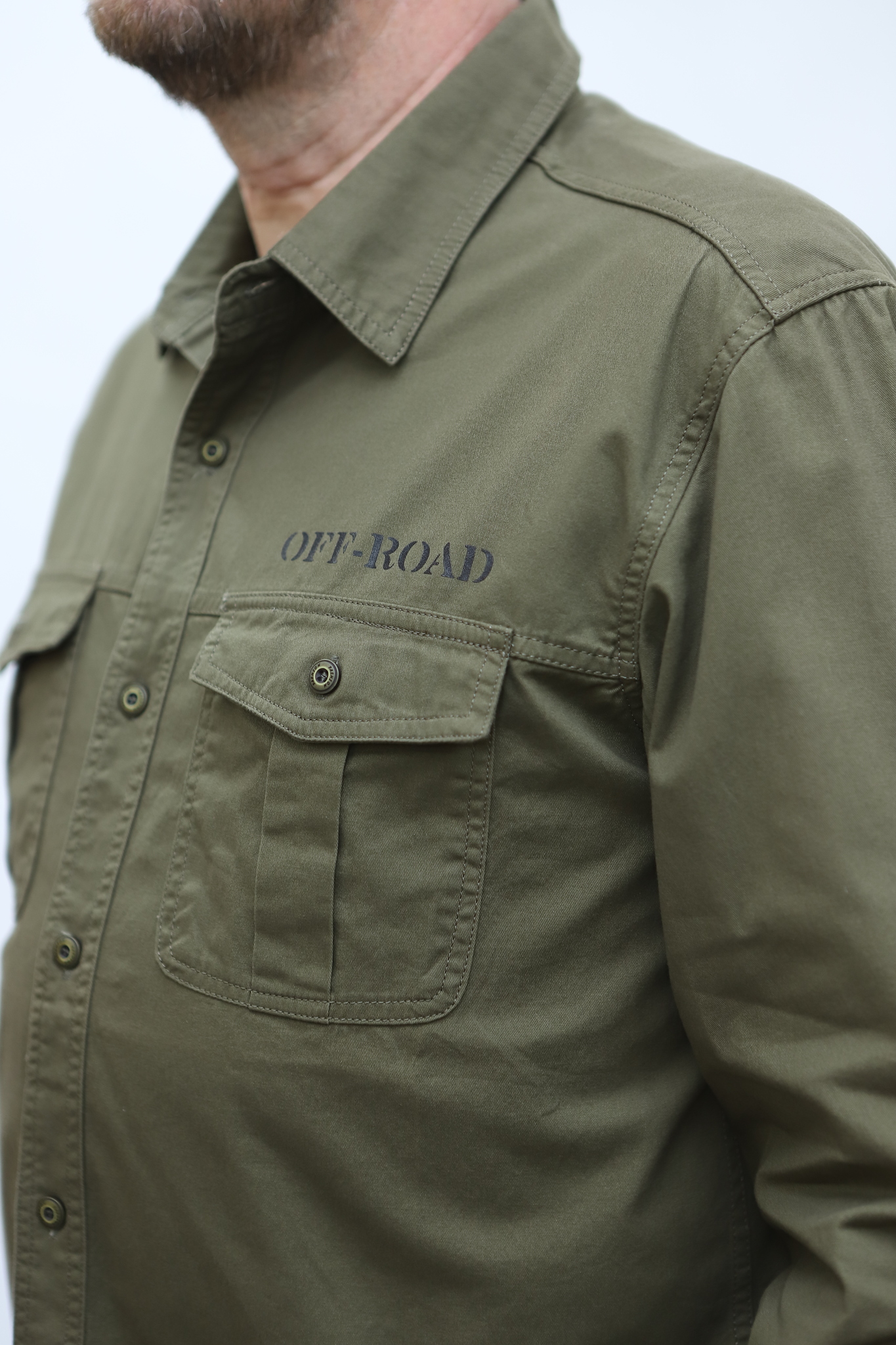 Дизайн: Два нагрудных кармана с клапанами и пуговицами, надпись **OFF-ROAD** на груди